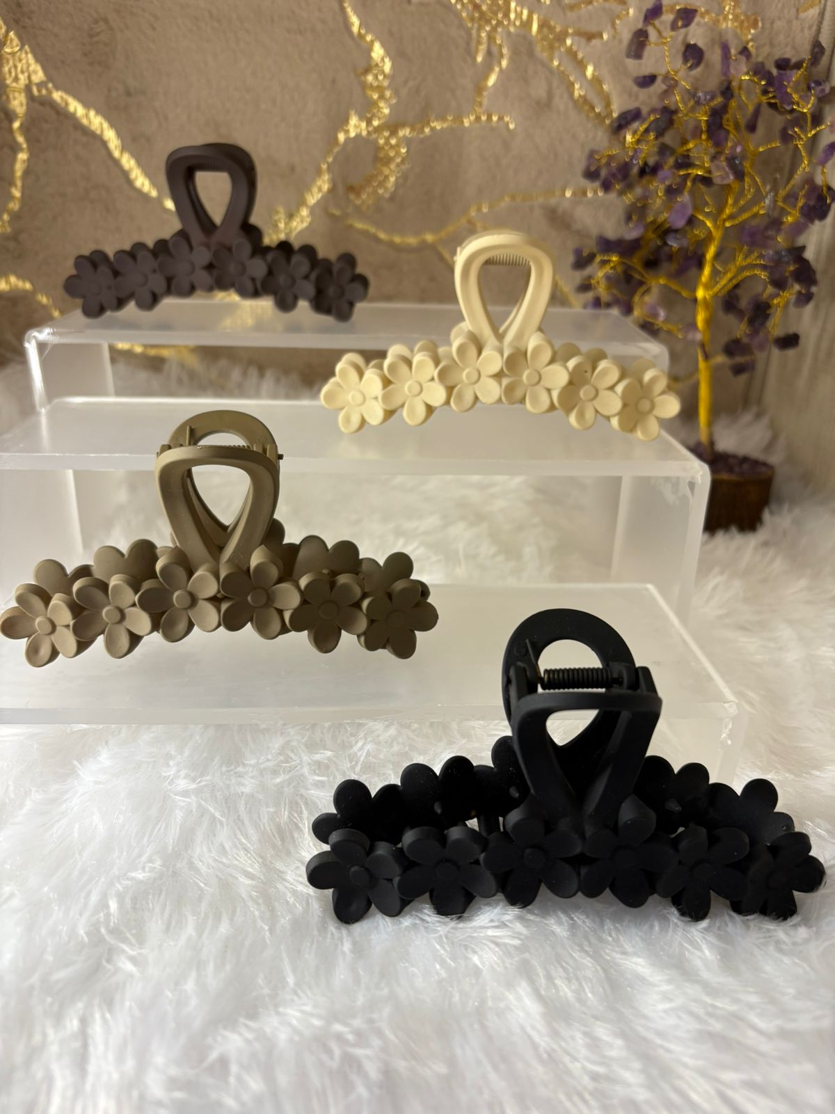 Elevate your everyday hairstyle with this Matte Finish Flower Design Hair Clutcher – the perfect blend of elegance, comfort, and utility. Crafted with a smooth matte texture and a charming floral silhouette, this clutcher not only holds your hair securely in place but also adds a touch of sophistication to your look. Whether you're at work, a casual outing, or a festive gathering, this accessory complements both western and ethnic outfits effortlessly. Its non-slip grip teeth ensure firm hold without tugging or damaging your hair, making it ideal for all hair types — long, short, thick, or thin.